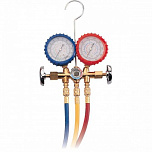 Прибор легко крепится к поверхности на магнитный ремень или металлический крючок. Манометры защищены резиновым чехлом, диаметр 80 мм. Высокое давление: 0-500 psi/ 0-35 кг/см². Низкое давление: 0-350 psi/ 0-24 кг/см². Вакуум: 0~-30 дюйм рт. ст./ 0~-76 см рт. ст.. Длина шлангов 150 см. Гайки на шлангах красного, синего и желтого цвета предусмотрены для исключения ошибки некорректного подключения оператором. Рабочее давление 600 psi, максимальное давление 3000 psi. Перед работой необходимо подержать шланг в вертикальном положении. Применение: хладагенты типа R12, R22, R134A и R1234Y.