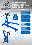 Оснащен редуктором для легкого вращения одной рукой. Редуктор позволяет поворачивать вывешенный двигатель под углом 360°. Надежная сварная конструкция и 4 поворотных колеса обеспечивают маневренность и устойчивость к перевороту. В комплекте поддон для сбора отработанного масла. С 4-мя регулируемыми кронштейнами для удобства вывешивания и обслуживания ДВС легковых и легких грузовиков. Для сборки/разборки моторов V6 и V8. г/п: 500 кг.