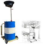 Установка для слива/сбора «отработки», антифриза в бочки 60÷220л. на подкатной анодированной тележке. Для любых транспортных средств, вывешенных на подъёмнике. Высота регулируется зажимом 1450÷2050мм. Фиксатор бочки на тележке. Сетка для улавливания мелких деталей, фильтров и предотвращения разбрызгивания. Поворотная воронка 360⁰ со смещённым сливным отверстием. Шаровой кран для контроля слива. Обрезиненные колёса большого диаметра для не ровных полов. Контроль заполняемости бочки через отверстие для воздуха.