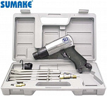 Пневмозубило с набором зубил 4шт удлиненное. Ход поршня 92мм. Частота ударов 2200уд/мин. Рекомендуется для резки металла толщиной до 2мм, для кузовных и шиномонтажных работ, удаления клёпок, срезки болтов, гвоздей и т.п. Также рекомендуется для отбойных и демонтажных работ по бетону.