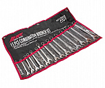 Набор ключей рожково-накидных в планшете 17 предметов. В комплекте: 8, 9, 10, 11, 12, 13, 14, 15, 16, 17, 18, 19, 21, 22, 23, 24, 27 мм. Зеркальная полировка. Материал: хром-ванадиевая сталь, повышающий износостойкость инструментов.