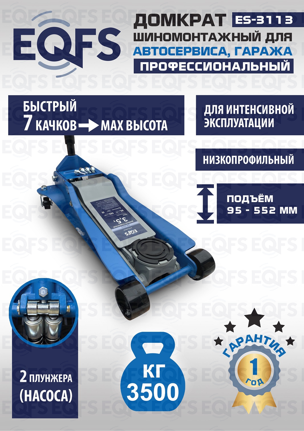 Технические особенности ES-3113 домкрата с низким подхватом 3,5 тонны: