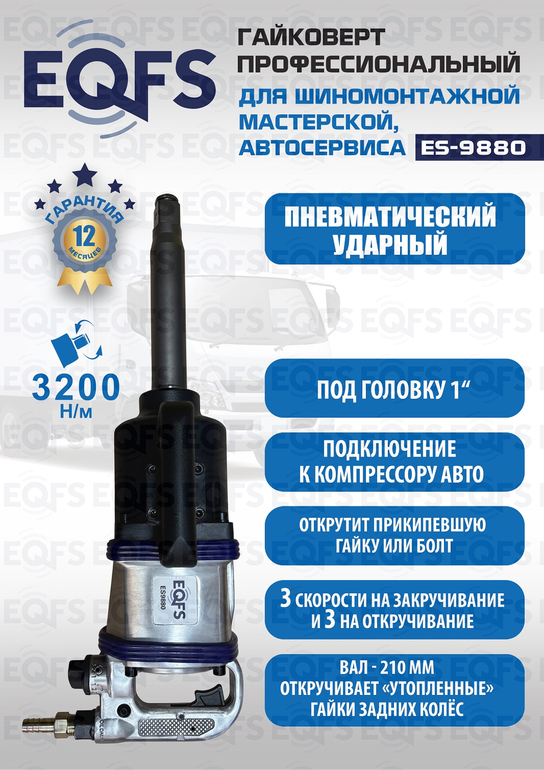 Технические особенности ES9880 Грузовой гайковерт 1":