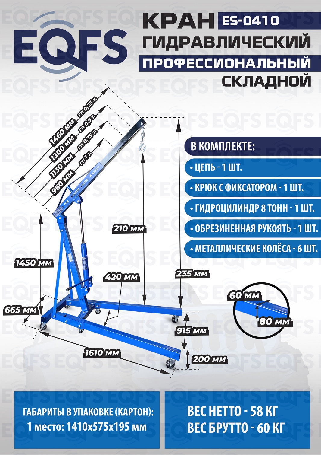 Особенности конструкции ES-0410 кран гаражный гидравлический 1 тонна: