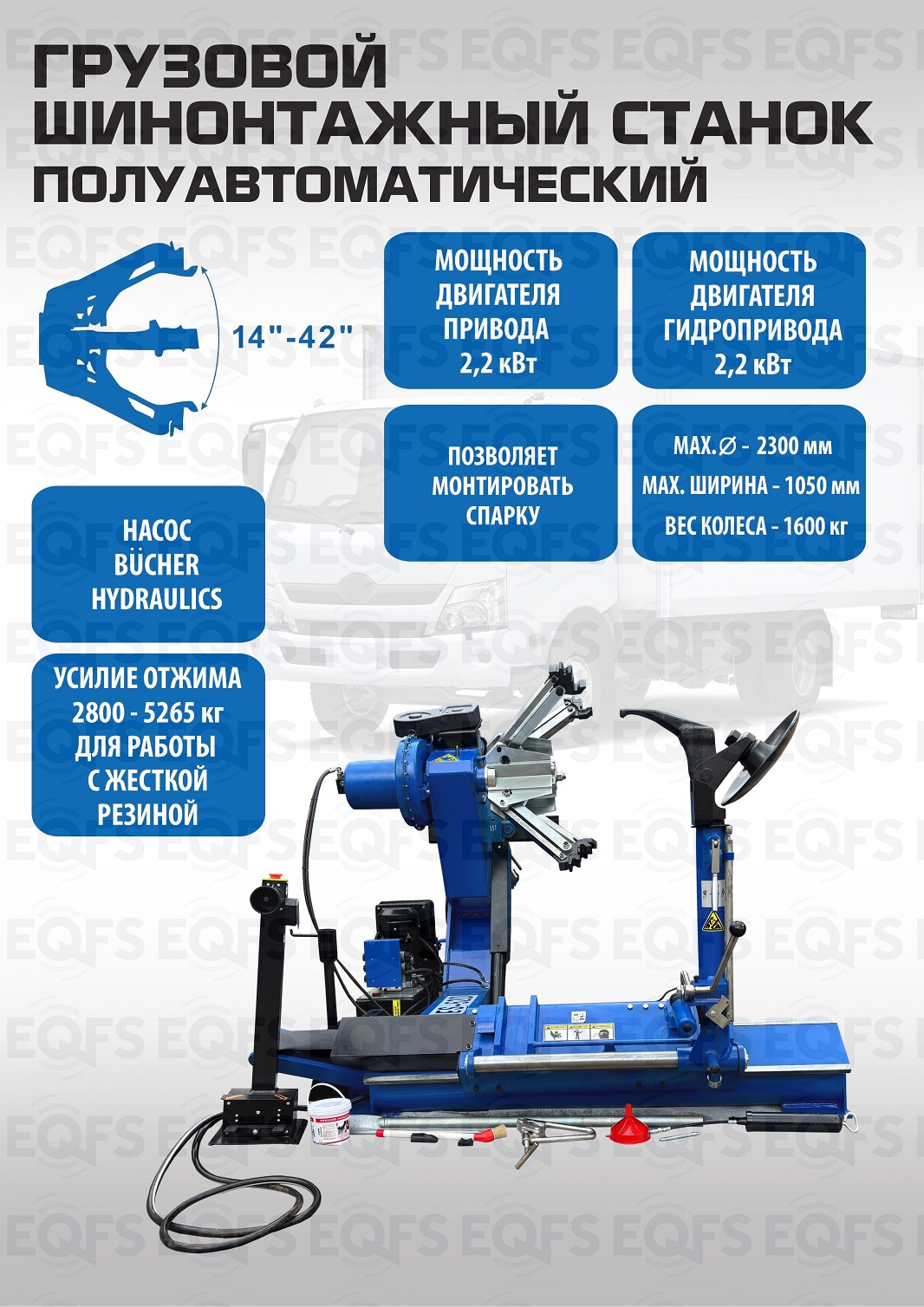 Комплект ES-52D грузовой шиномонтажный станок класса «премиум» для «жестких» условий эксплуатации. Диски алюминий и сталь диаметром 14”-42”, Максимальное колесо 2300х1050 мм, вес колеса до 1600кг. Моторы 2,2 + 2,2 кВт. Гидравлика – немецкая «BUCHER HIDRAULICS». Идеально подходит для тракторов, сельхозтехники, дорожной техники. Гарантия до 18 месяцев.+ ES-850 Балансировочный станок 380V. Балансирует грузовые и легковые диски - 13-24” ширина 1,5-20”, Колесо «в сборе» - до 1200 мм, вес до 150кг. Напряжение 380В. Встроенный пневмоподъемник. Балансировочный станок для шин легковых, грузовых автомобилей, автобусов, микроавтобусов и т.п.