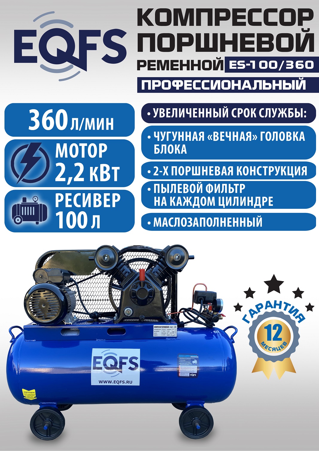 + компрессор поршневой трехцилиндровый производительностью 360 л/мин