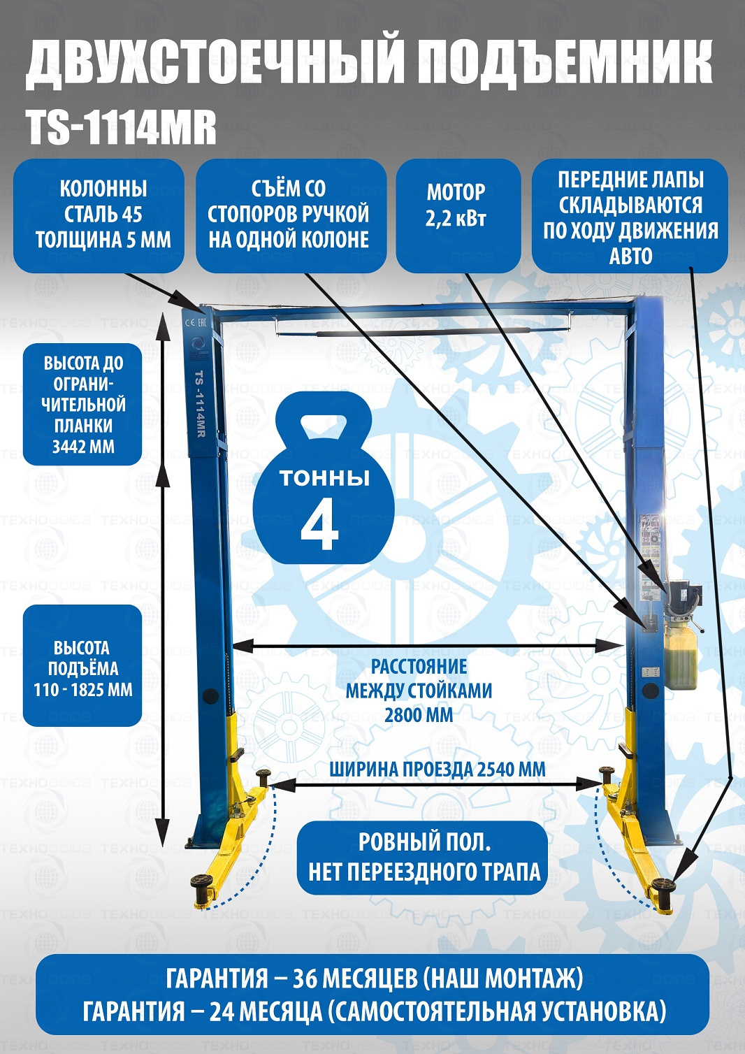 TS-1114MR подъемник 4 т, 2-х ст. электрогидравлический (2025)